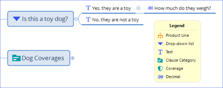 You can model follow-up questions to a True/False (binary choice) question in mind maps by using a Drop-down list. This is because True/False topics cannot have subtopics. They are deleted when you import the mind map, and you cannot model this relationship in Advanced Product Designer App.