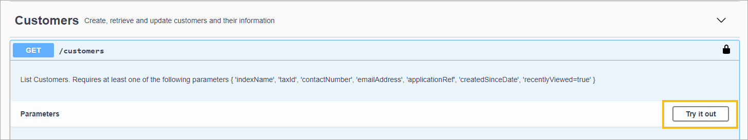 9. In the Parameters section, click the Try it out button.