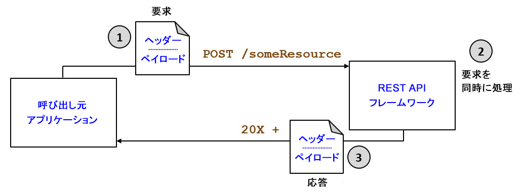 someResourceという名前のリソースの POST です。要求には、一連の要求ヘッダーがあり、ペイロードが含まれる場合もあります。 - クラウド API は要求を同期処理します。