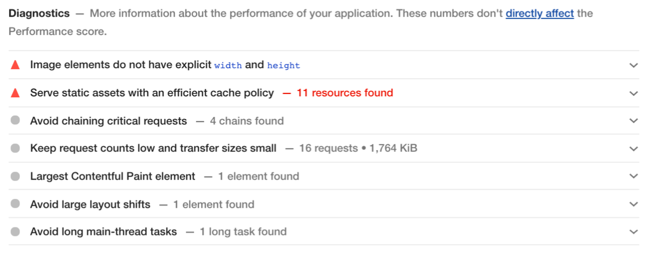 When auditing a page, Lighthouse runs a barrage of tests against the page, and then generates a report. From here, you can use the failing tests as indicators of what you can do to improve your app.