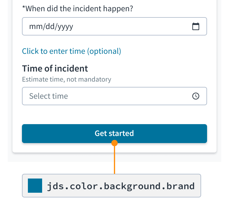 For instance, a button that uses the color token jds.color.background.brand will be consistent with all other elements that use it or a related token. If you change the theme to use a different brand color, all of those elements will automatically update.