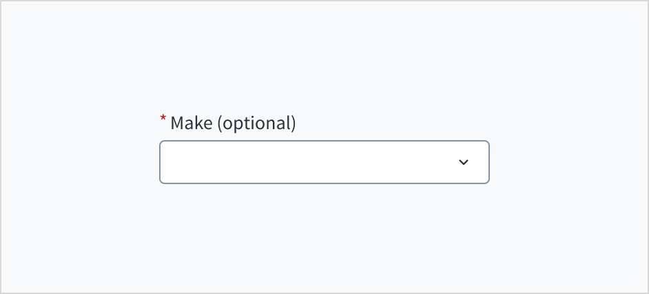 Error message text tells a user how to fix the error. In the case of the dropdown, errors are often related to something that must be fixed for in-line validation. For example, if someone doesn't input the make of their vehicle and this is a required field, you can use error text to guide the user to a solution: “Select the make of your vehicle.”
