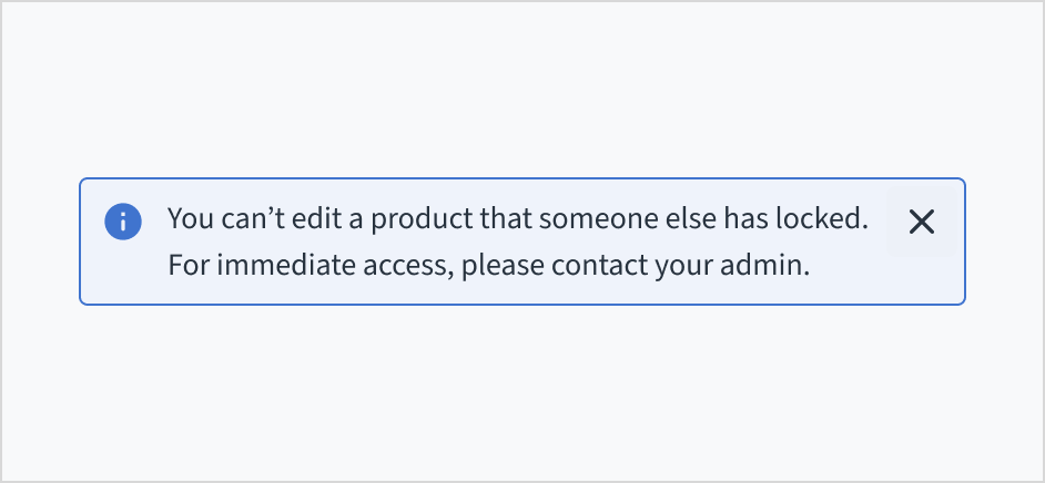 Info messages convey non-critical information or updates to users without requiring action. Use them to inform people about something that might help or impact them.