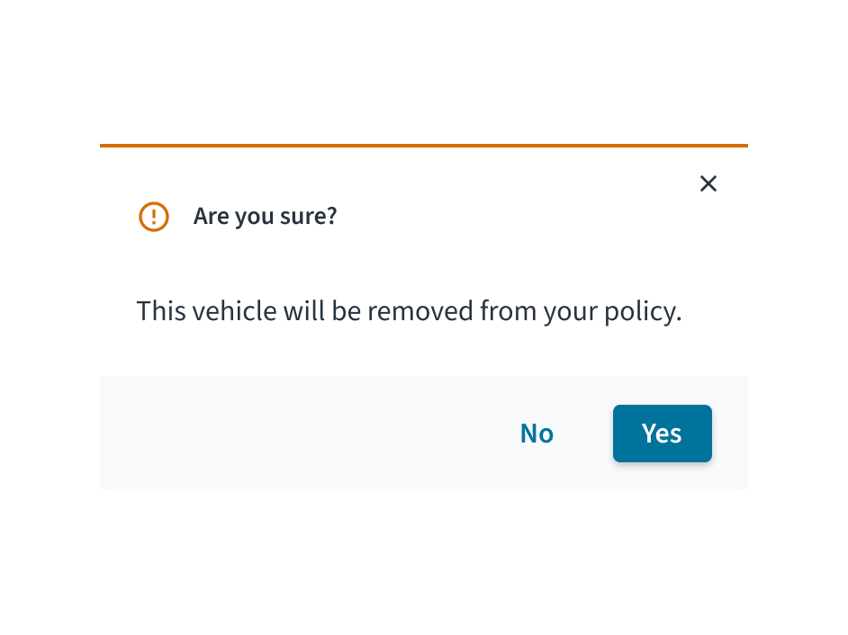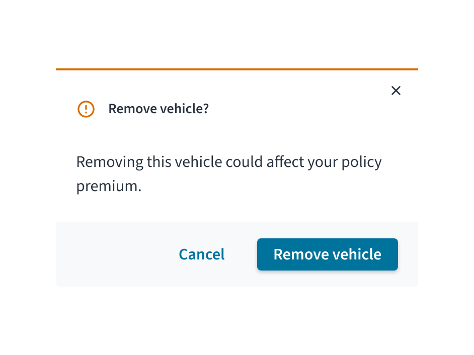 - Make sure the question and the actions use the same words. Avoid using disjointed language. For example, if you ask, "Delete portfolio?" in the header, the primary call-to-action button (CTA) must also read "Delete".