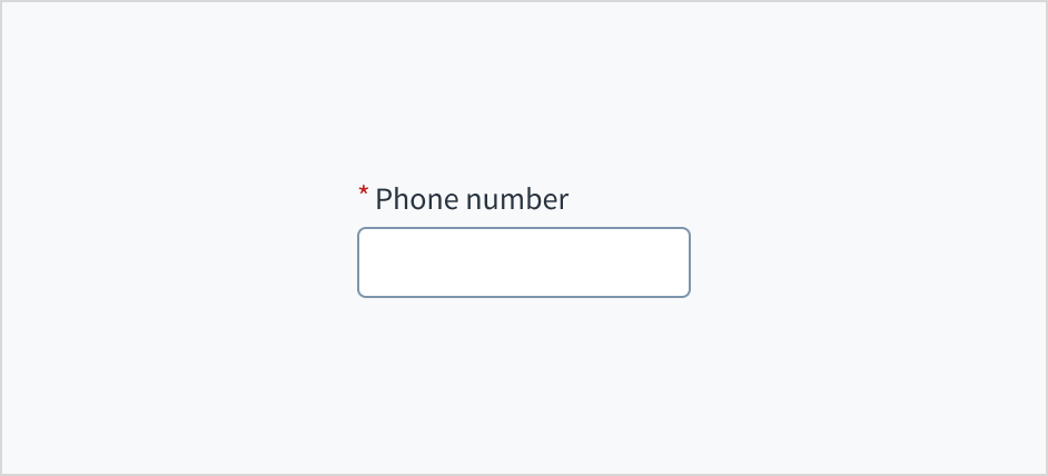 Error message text tells a user how to fix the error. In the case of the phone input field, errors are often related to something that must be fixed for in-line validation. For example, if the user doesn't fill out a required field that asks for their phone number, you can use error text to guide them to a solution: "Enter your phone number."