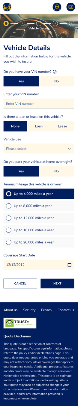 We use our made-up company called “FutureState” for various workflows to see how to best optimize and test Jutro. This workflow is for usage-based insurance. You’ll see that all three form factors have the same information.