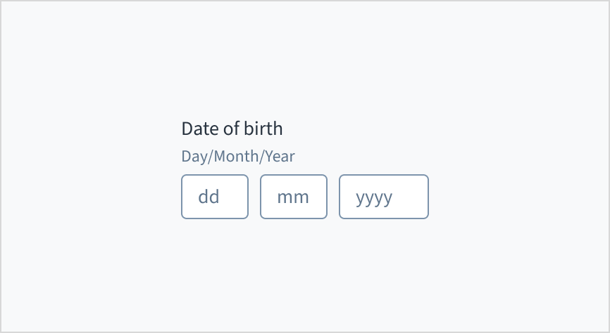 When using a date input, include the date format as help text. Relying solely on placeholder text to communicate the date format is problematic because placeholder text disappears once the user starts typing. This can leave users unsure of the expected format.