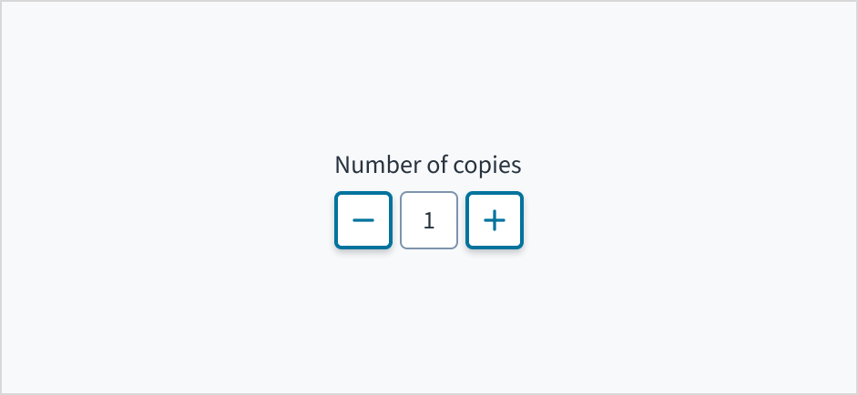 The stepper component enables users to incrementally increase or decrease a numeric value. Users can also type numeric values directly into the input field.
