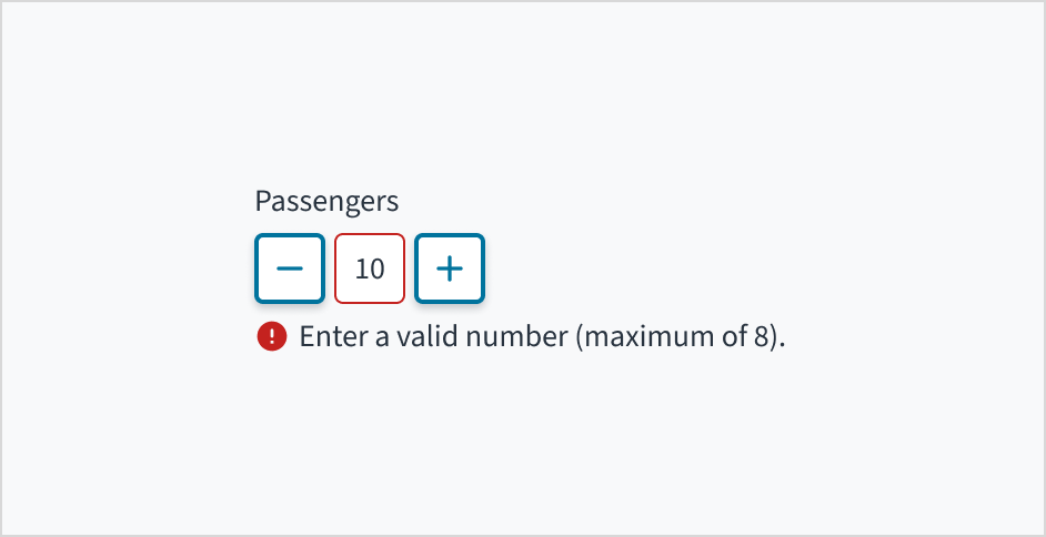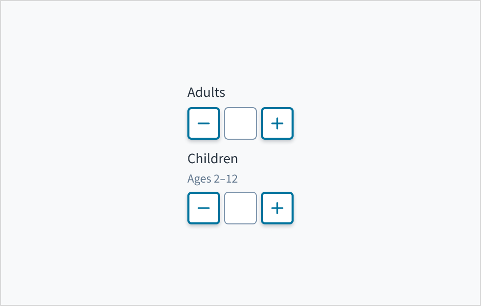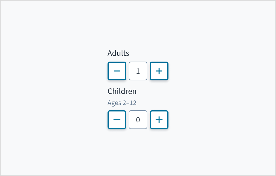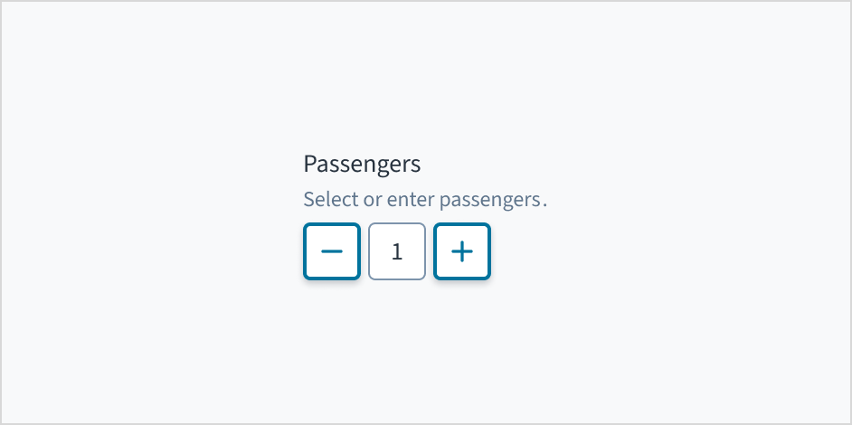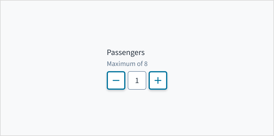 Label: Indicates what value the stepper changes, such as number of passengers.