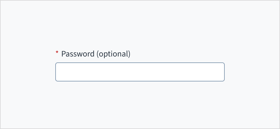 Use an asterisk (*) to indicate required fields. The asterisk precedes the field label. This helps users to easily locate which fields are required by scanning just the left-most character of the label.