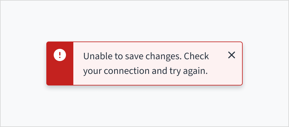- Be mindful of context: Inline notifications and error messages respond to their container panel, and toasts can be made "full-width" in small form factors depending on usage. Well-chosen, concise wording ensures clarity regardless of these adjustments.